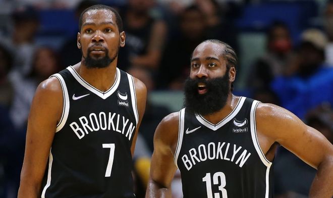 说到篮网时期,哈登和杜兰特在并肩作战后期,关系已出现裂痕。